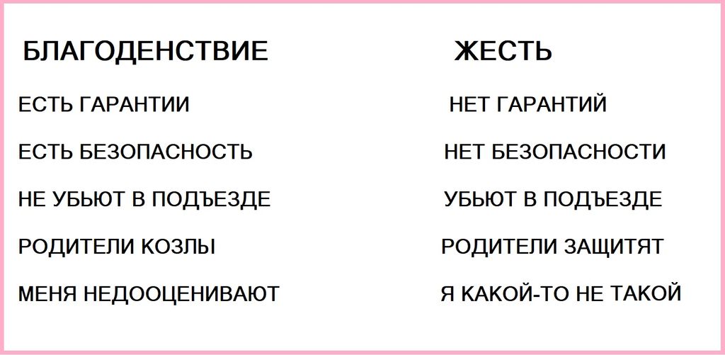 Самая сверкающая банальность жизни состоит в том, что для проявления бытовых черт, традиционно считающихся хорошими, светлыми, положительными — нет худшего субстрата, чем всеобщее благоденствие, гарантированное или кажущееся таковым.